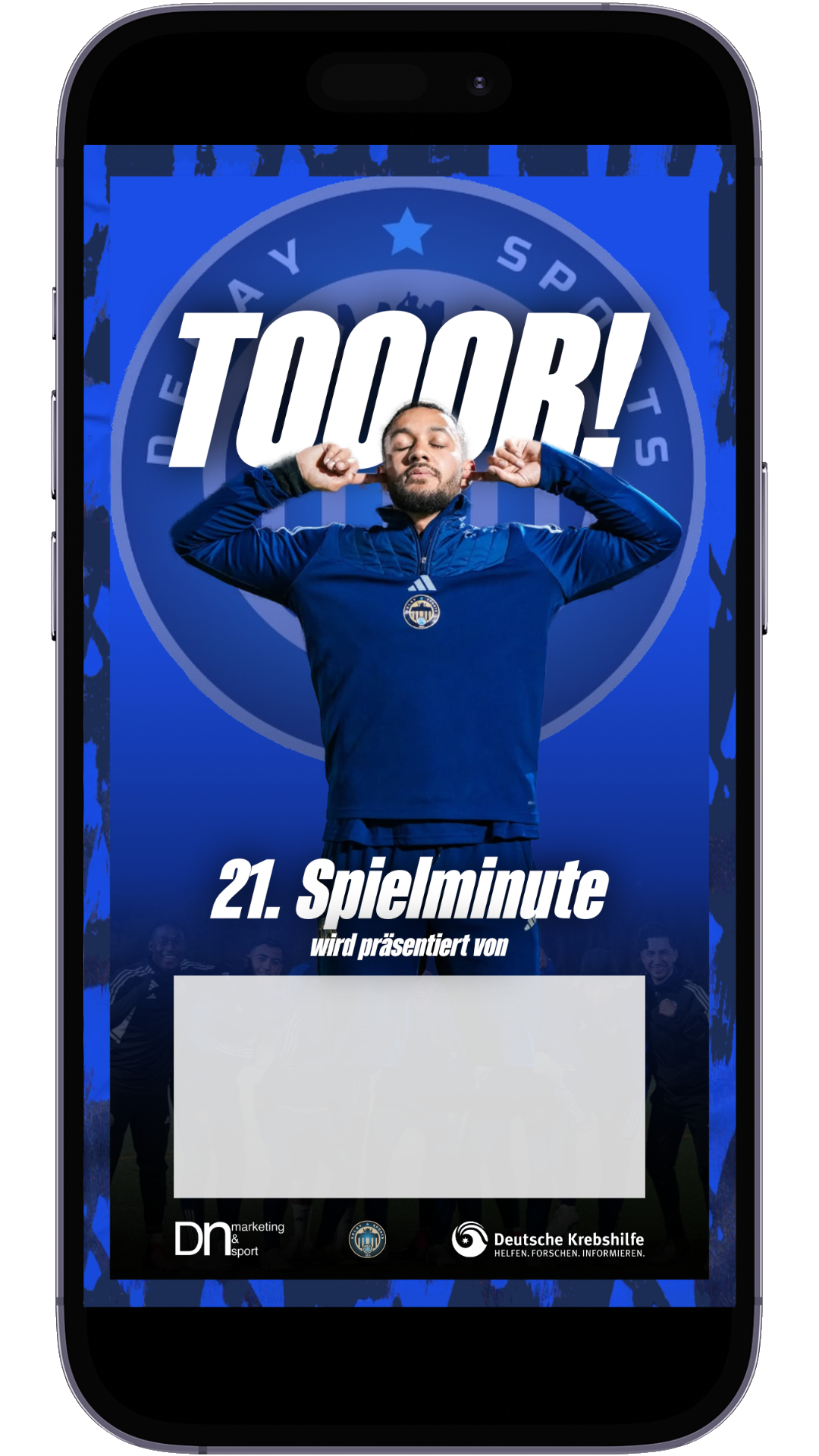 Dein Name oder Unternehmenslogo erscheint auf unseren offiziellen Social-Media-Kanälen – DU präsentierst das Tor. Außerdem wirst Du dauerhaft auf unserer digitalen Sponsorenwand 89+1 sichtbar sein.