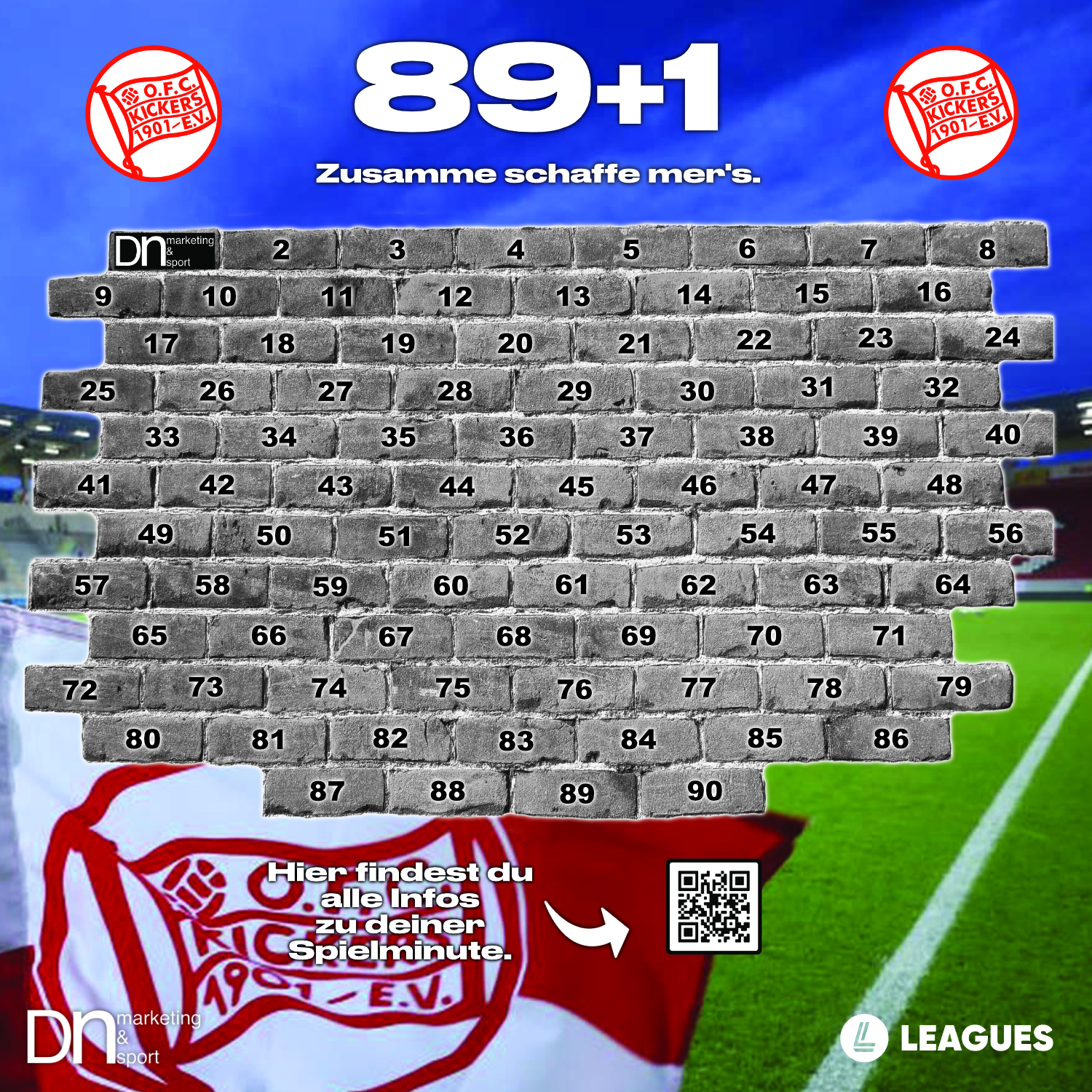 Außerdem wirst Du dauerhaft auf unserer digitalen Sponsorenwand 89+1 sichtbar sein.