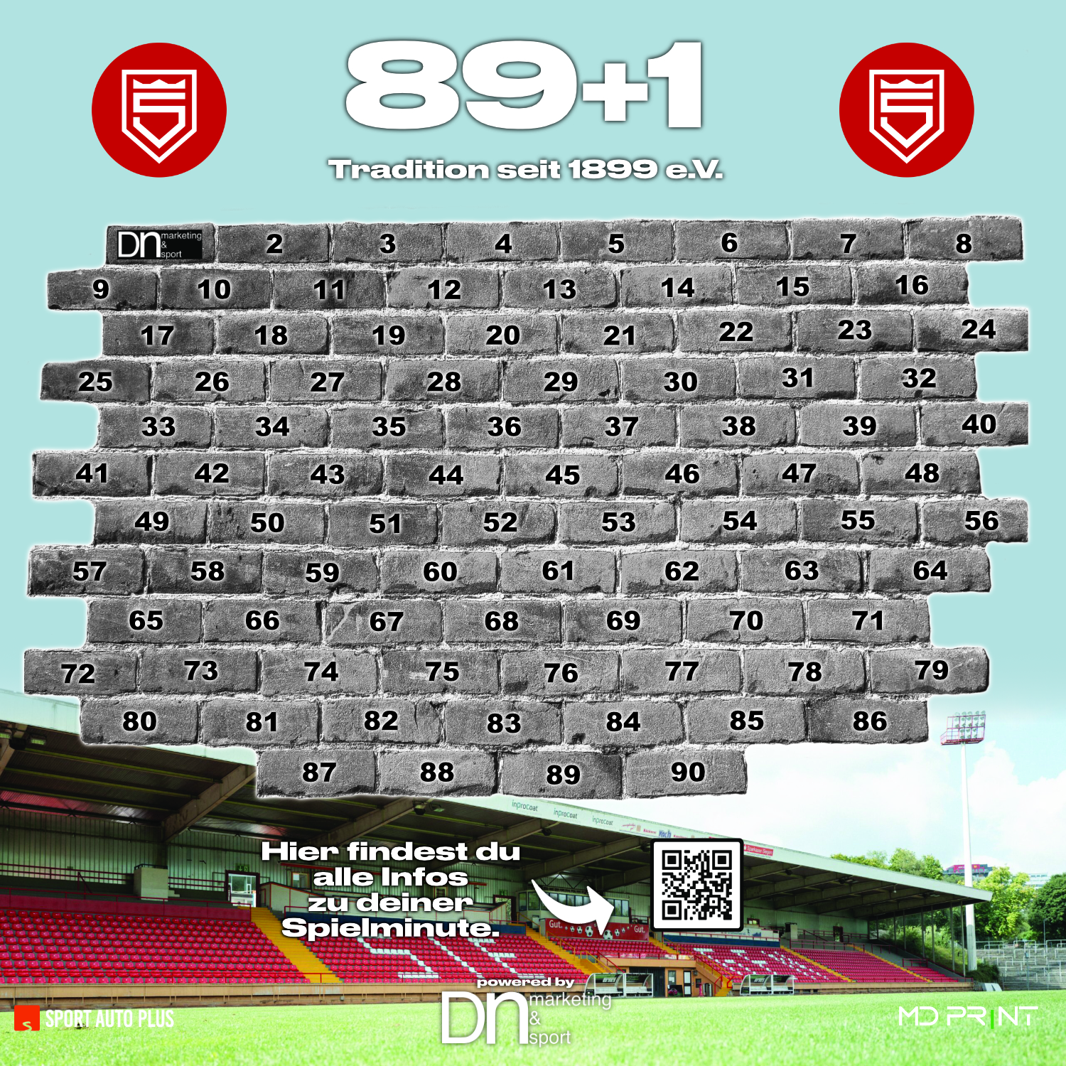 Dein Name oder Unternehmenslogo erscheint auf unseren offiziellen Social-Media-Kanälen – DU präsentierst das Tor. Außerdem wirst Du dauerhaft auf unserer Sponsorenwand 89+1 im Leimbachstadion sichtbar sein.